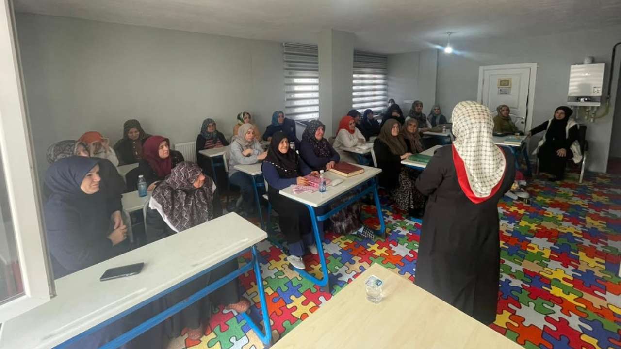 DMHA DÜZCE- Düzce İl Müftü Yardımcısı Selma Velioğlu Çelik, ADRB Vaizi Sümeyye Özsoy ve Din Hizmetleri Uzmanı Neşe Yaldız tarafından ilçedeki Kur’an kurslarında düzenlenen konferanslarda, “Peygamberimiz ve Aile Ahlakı” konusu ele alındı.Programlarda, Peygamber Efendimizin (s.a.s) aile hayatı, örnek ahlakı ve toplumsal değerler açısından rehberliği katılımcılara aktarılırken, aile yapısının korunması ve güçlendirilmesinin önemi vurgulandı.Yoğun katılımla gerçekleştirilen konferanslarda, katılımcıların soruları da yanıtlanarak karşılıklı bilgi paylaşımı sağlandı.